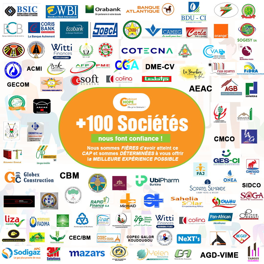 Le Cabinet HOPE Consult SARL, créé en 2017, est né de la constatation des difficultés rencontrées par les PME/PMI burkinabè dans le recouvrement amiable des créances générées dans le cadre de leurs activités. Suite à l’insuffisance de structures alternatives spécialisées dans le recouvrement, la formation et le conseil, le Cabinet HOPE Consult SARL, Plus qu’un Partenaire, s’est donné pour mission d’accompagner les structures publiques et privées pour plus d’efficacité, de performance, de rentabilité et de Leadership.